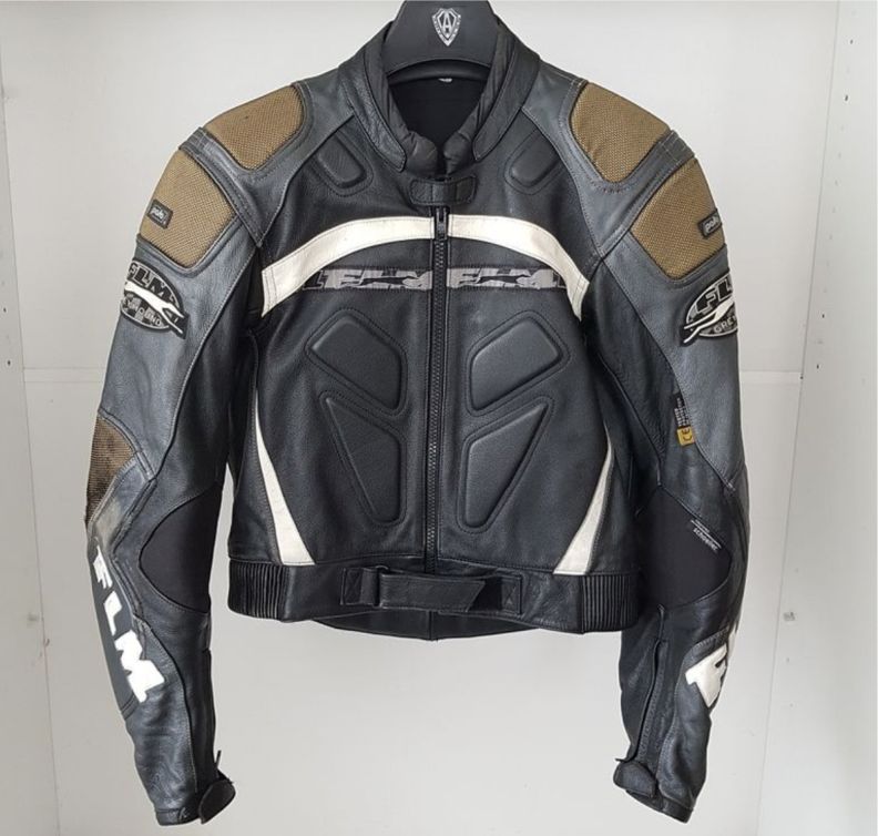 Leather motorcycle jacket from FLM in size 52. Includes protectors and protectors. Older, used. Personal collection or I can send.