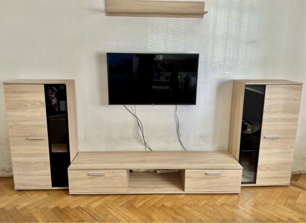 Používaná ale je jako nová. V pravé větší skřínce jsou uvnitř vyvrtané dvě dírky, aby skřínka držela u zdi, viz. foto.