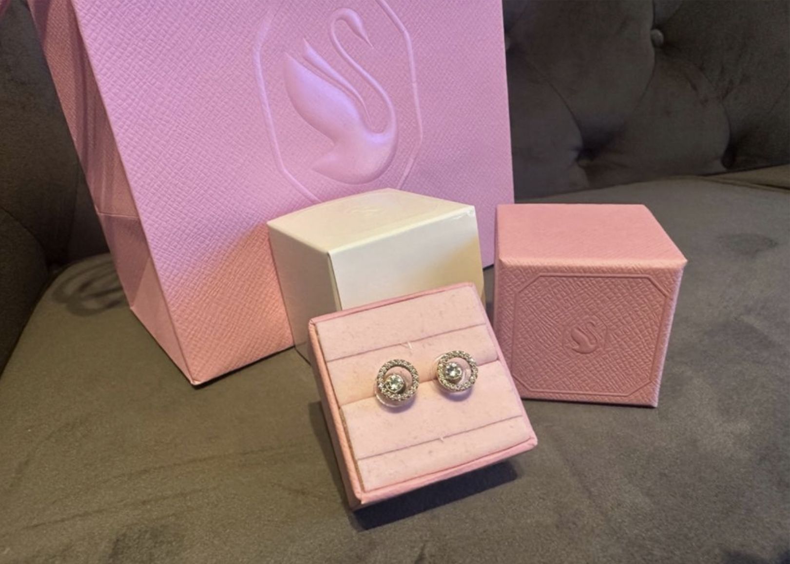 Růžové zlato/kov. Nepoužité, 1,1 cm průměr, hodici se pro všechny příležitosti, do práce; na sport či event i více společenskou událost. Kvalita a dlouhotrvající lesk a zpracování oficiální sítě kamenných obchodů Swarovski zárukou. Original balení. Zásilkovnou či osobní odběr.