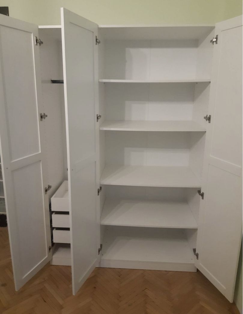 Brand new, recently assembled, unused bedroom set for sale together or separately. White chest of drawers with 3 drawers, width: 93cm, depth: 48cm, height: 102cm HUF 50,000. White bedroom wardrobe with one door, hanger + 3 built-in drawers, width: 45cm, depth: 58cm, core: 210cm HUF 30,000. 2 bedroom wardrobes. One with built-in drawers + hangers, the other with 4 shelves, width: 91cm, depth: 58cm, height: 210cm 80-80,000/piece. Each piece of furniture is brand new, and the listed prices are only half of the original price.
