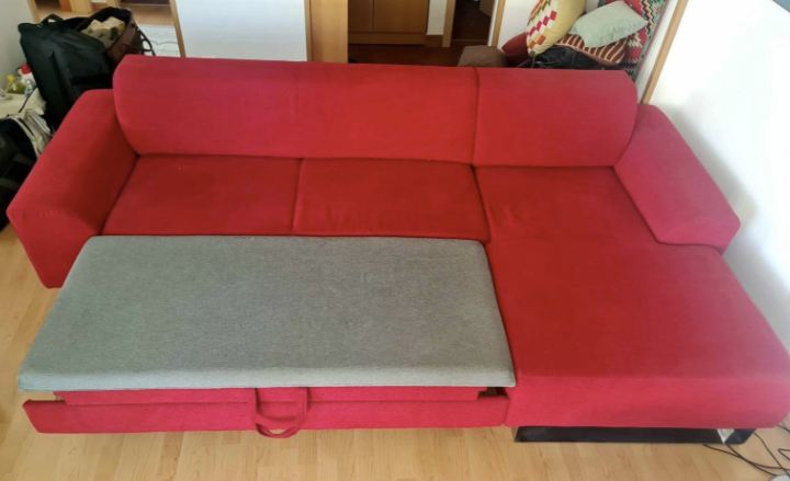 For sale is a well-preserved, rarely used, openable corner sofa set (andante) with guest bed function.