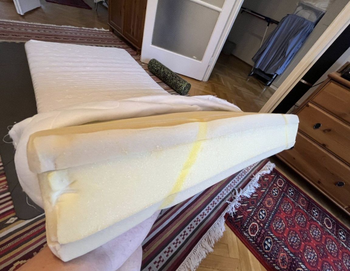 A comfortable, high-quality, 90x200 cm bed bought in XXX Lutz is for sale, with a special, flexible, two-zone bed frame reinforced at the shoulders + hips and a clean, pleasantly hard, washable, 3-layer, hardly used mattress. The bed is sold together, however, if you only need one item, please call and we will discuss.