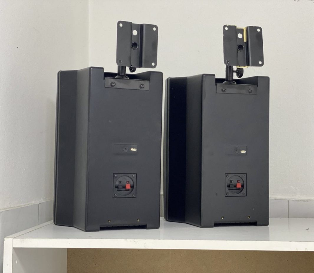 Shown in the last picture: It looks like a pair of JBL Control 5 speakers.