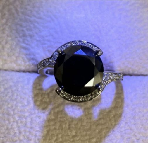 Tiffany design 18K white gold 4ct. Black diamond ring size 54
