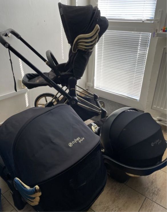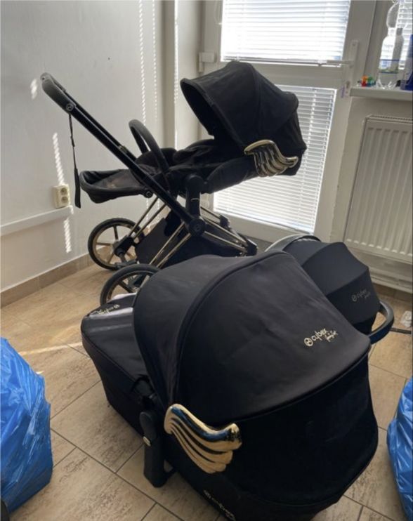 Three-combination limited edition Jeremy Scott-Wings, the whole stroller will have to be washed thoroughly because of the moving, I don't have time for that, the structure is more scratched since folding, the car seat plastic is more scratched NEGOTIATION IS POSSIBLE-Prague
