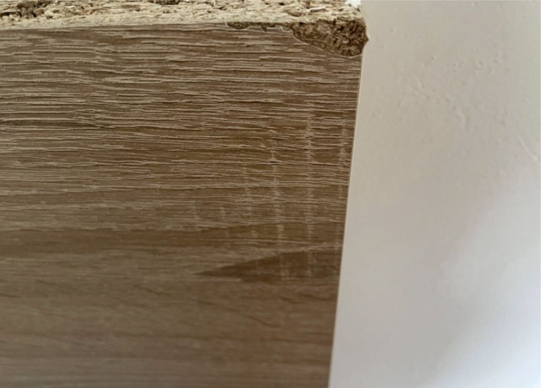 Z JENA nábytek. Rozložený, u dvou desek (boční deska (F-3) a spodní deska (F-1)) v jednom rohu vždy odlomeno lamino, jinak výborný stav.