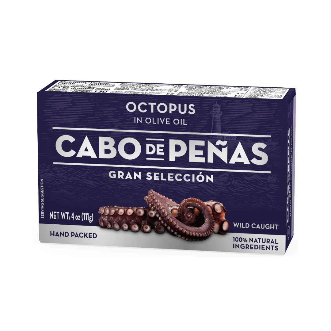 Pulpo en Aceite de Oliva. Cooked until tender, the pieces of octopus tentacles from Galicia are cut thick as is the traditional way and preserved in extra virgin olive oil. All the work is done for you, making this tin the easiest way to enjoy octopus whenever you desire. Serve the octopus on a plate, sprinkle some paprika and enjoy a typical Galician tapa. For a heartier dish, serve over mashed potatoes or mix with boiled potatoes and finish with extra virgin olive oil and paprika. It’s a perfect combo.