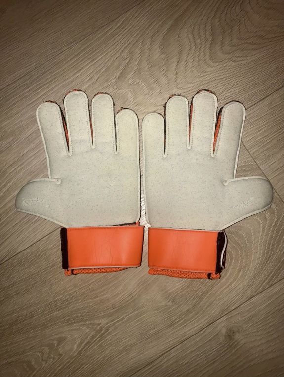 Goalkeeper gloves with a very good grip. Condition: Very good, signs of use: worn parts on the back of the gloves