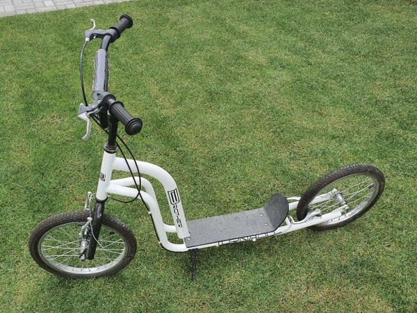 I am selling a new scooter, almost unused. Scooter with inflatable wheels 16 "/ 16", frame material steel, weight 8.7 kg, load capacity 90 kg. Scooter for children from 9 years and adults with a load capacity of 90 kg has a solid Hi-tech frame made of reinforced steel, inflatable wheels and height adjustable handlebars. The step is equipped with anti-slip treatment and there are "V" Alu brakes on both wheels. The Brother Tornado scooter is great only because it can be used not only by children from about 9 years of age, but also by adults. The hi-tech frame made of reinforced steel boasts excellent strength, the handlebars can be adjusted in the range from 80 to 90 cm and the inflatable wheels guarantee a comfortable ride without unpleasant shocks. The sufficiently large riser is 33 centimeters long and has a non-slip surface for safe driving. The "V" Alu brakes on both wheels also contribute to this. There is also a practical stand. Buy a Brother Tornado scooter and make not only children happy, but also yourself. You will certainly appreciate the benefits of moving quickly. Original price 85 Eur.
