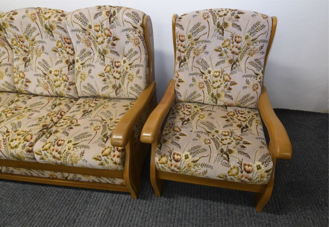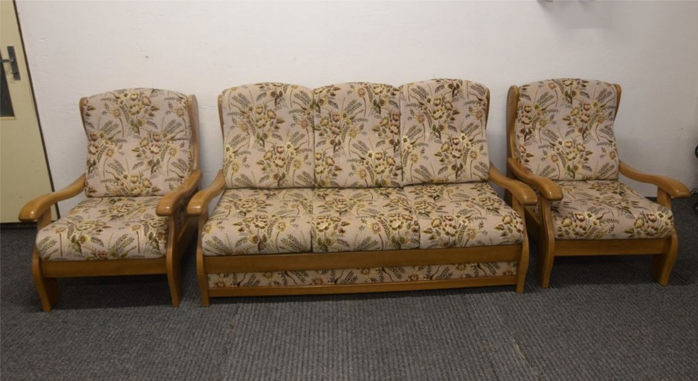 Rustikální sedací souprava trojka rozkládací a dvě křesla.