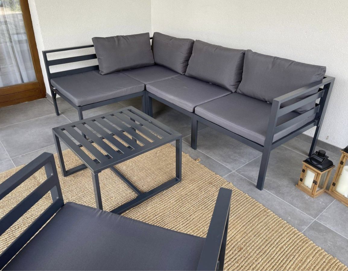An aluminum garden sofa set bought a month ago is for sale due to lack of use. We bought it from the Vidaxl website, undamaged, for sale with the boxes.