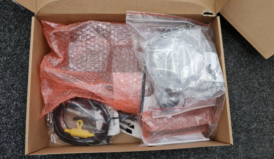 Package contents: echomap Ultra 102sv, active holder (U-bracket) + mounting screws, ultrasonic probe GT54UHD-TM (with mirror mounting kit), adapter / reducer for probes from 12 PIN connector to 8 PIN, integrated mounting template, display cover, power cable, assembly manual, documentation.