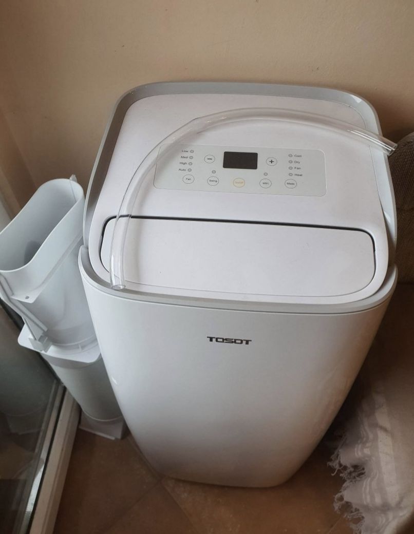The mobile air conditioner shown in the picture is for sale, which can be used to cool and heat. The device is actually in new condition, we have switched it on 3 times. We installed an air conditioner with a home renovation grant, so we don't need it anymore.
