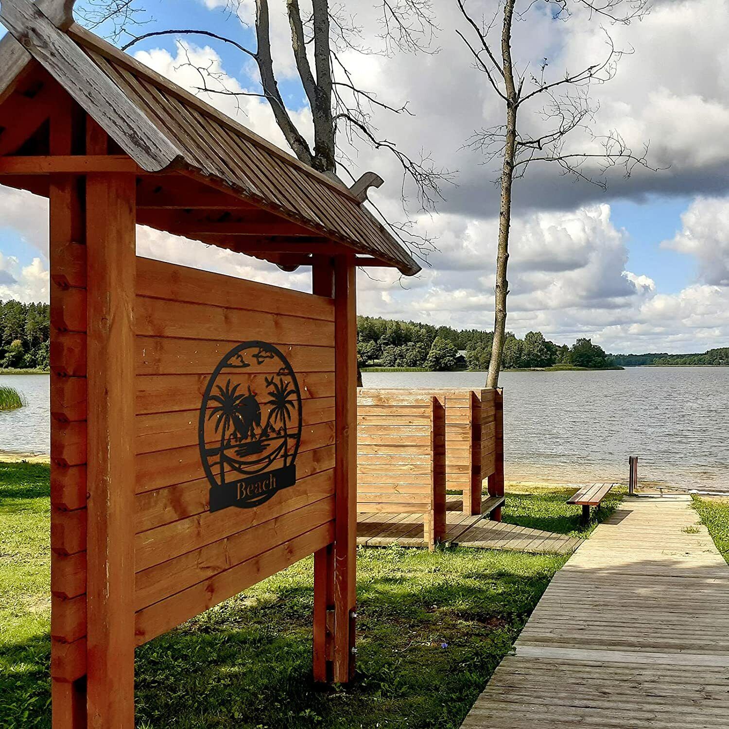 Beach Palm Tree Hammock Metal Wall Sign Personalized Wall Art Black Home Decor