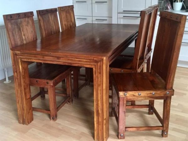 Jedálenský stôl a stoličky CasaMia Predám jedálenský stôl so šiestimi stoličkami CASAMIA. Rozmer stola 90x180cm. V perfektnom stave. Cena 1000€.
