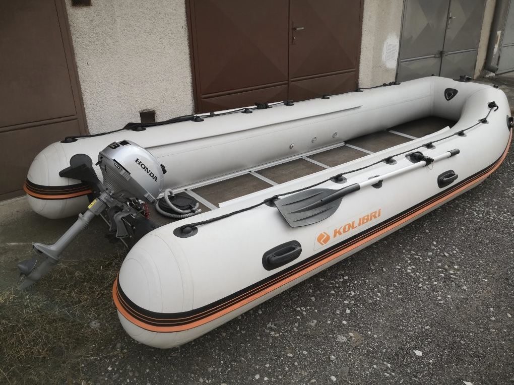 predám čln KOLIBRI 450 DSL pre 7 osob možnosť zavesiť motor do 35 hp r.v.2022,dlžka 4.5m,šírka 1.9m,pevna skladacia podlaha 5 komorový+nafukovací kýl,vesla,pumpa,2xskladacia lavica na sedenie,vaky na prepravu zloženeho člna stal 1870 eur.teraz 900 eur. čln je vždy nafukany garažovaný a ošetrený možnosť aj motor HONDA 2.3 HP štvortakt r.v.2022 mala spotreba lahučký spolahlivý stal 930 eur.teraz 600 eur.vyskušam na čln netreba lodný vodičský preukaz do 15 hp netreba prihlasovať na sps.