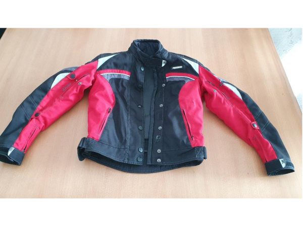 Predám dámsku látkovú moto bundu značky PROBIKER veľkosť 34. Bunda má vyberateľnú termo vložku na zips, vetracie otvory na zips. Bunda má chrbtový chránič, lakťové aj plecné chrániče. Na rukávoch sú zipsy, ktorými možno rozopnutím rozšíriť rukávy. Bunda je nenosená, ako nová, čo je aj dôvod predaja.
