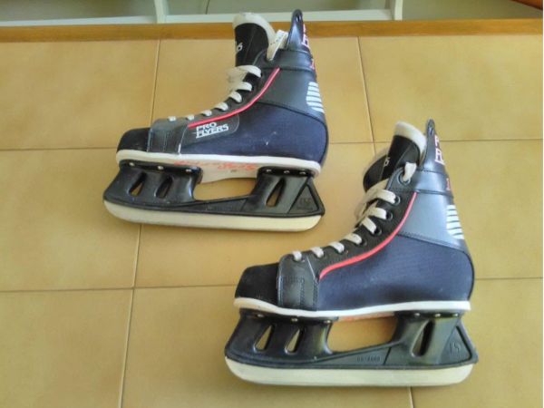 Predam kozene hokejove korcule PRO FLYERS 1000, vel.36, dlzka vnut.vlozky je 24cm. Korcule su vystuzene, maju ochranne prvky, chraneny nart jazykom s hrubou vystelkou, viazanie snurkami, boli malo pouzivane, su ako nove, cena je 16eur + post.cca 4eur.