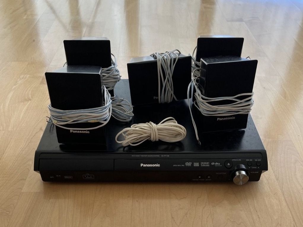 I am selling a fully functional, older, but rarely used home theater Panasonic SC-PT150. Repro 5 + subwoofer. Dolby digital Pro II, dts Surround, WMA, MP3, JPEG The price also includes a connecting cable
